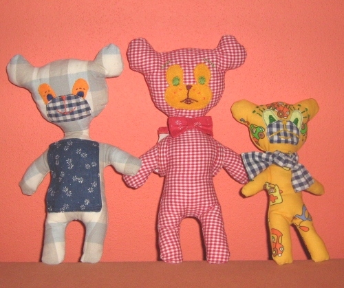 Na této stránce naleznete mimo jiné textilní hračky, které se staly velkým hitem. Jedná se o spací mazlíčky s kapsou na kapesník pro "věčné smrkálky", kteří v noci stále pátrají po kapesníku. Materiál je převážně bavlněný, vložka nealergizující, žádné korálky ani knoflíky. Vše pratelné na 40°C - takže ani žádný mrazák!
