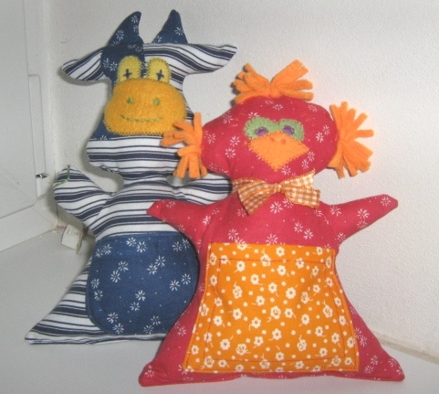 Na této stránce naleznete mimo jiné textilní hračky, které se staly velkým hitem. Jedná se o spací mazlíčky s kapsou na kapesník pro "věčné smrkálky", kteří v noci stále pátrají po kapesníku. Materiál je převážně bavlněný, vložka nealergizující, žádné korálky ani knoflíky. Vše pratelné na 40°C - takže ani žádný mrazák!